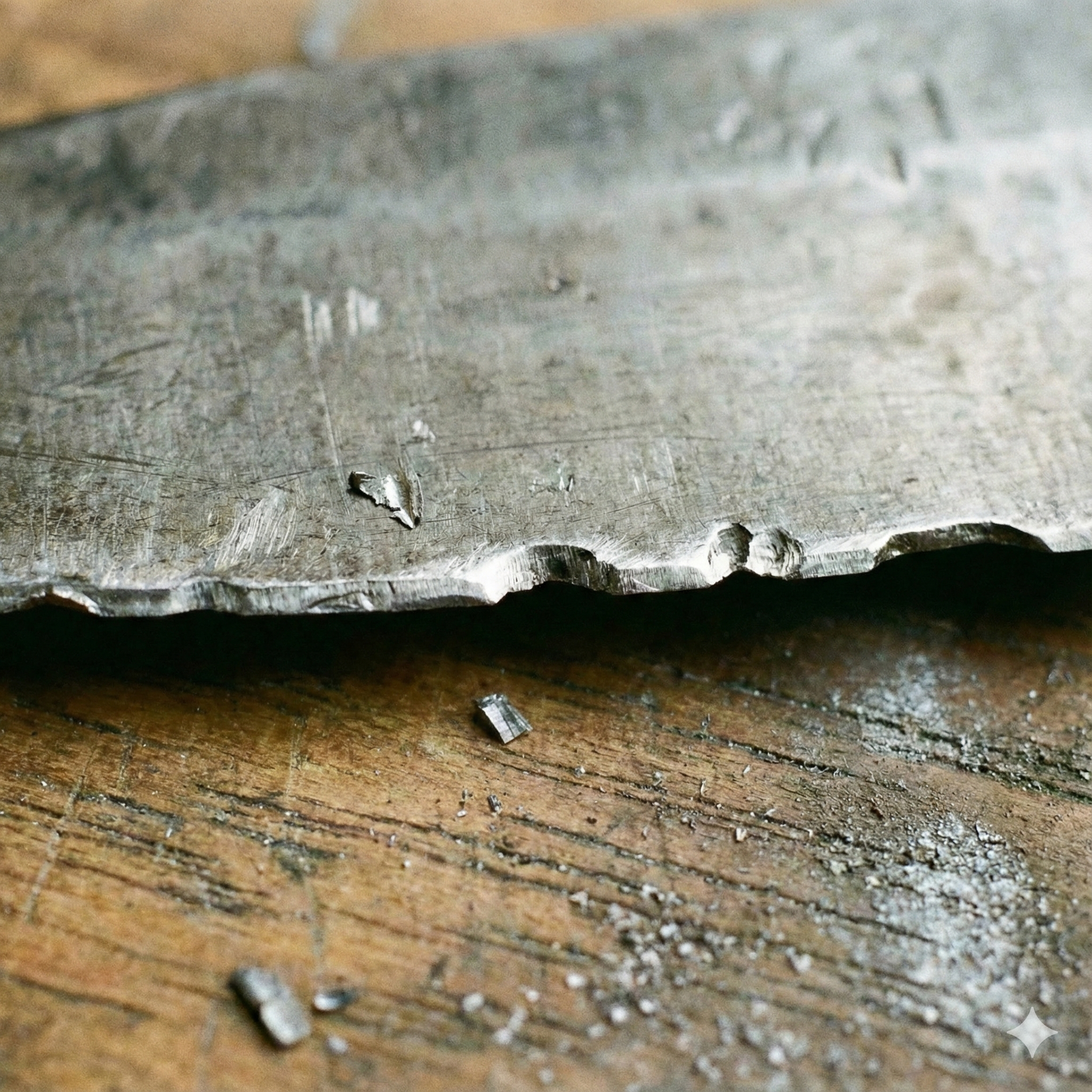 A 30X jeweler's loupe view of a sharpened edge. I'd just sliced through some paper - the tiny white dots are paper dust 🔍✨